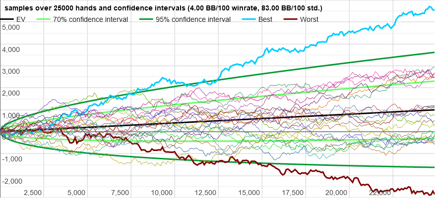 Calculate expected poker variance.